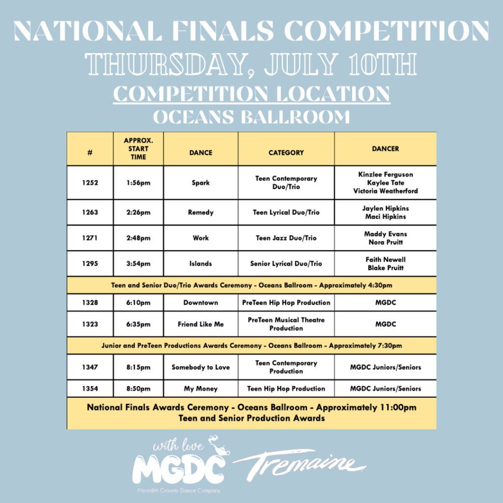 The Meredith Gravely Dance Company is excited to be back in Orlando, Florida to compete at Tremaine Dance Competitions and Conventions National Finals!